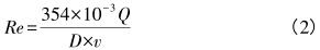 式中,Q為體積流量,m3/h;D為流量計內(nèi)徑,mm;v為運動粘度,m2/s。