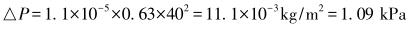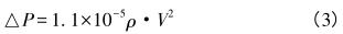 式中,△P為壓力損失,kg/m2;ρ為流體密度,kg/m3;V為流速,m/s。