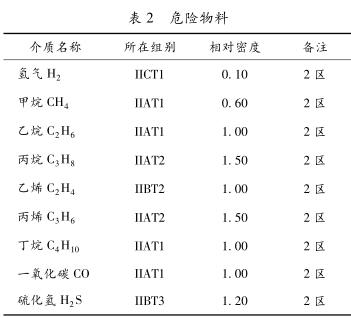操作溫度為48.9℃,沒有特殊性,選擇普通的渦街流量計即可;根據(jù)現(xiàn)場情況,流量計為露天安裝,防護等級選擇IP65即可;根據(jù)《爆炸危險環(huán)境電力裝置設(shè)計規(guī)范》GB50058-2014,本裝置中各介質(zhì)所在組別屬于危險物料,見表2。因此儀表的防爆標志選擇ExiaⅡCT4Gb即能滿足要求。根據(jù)項目統(tǒng)一要求輸出信號選擇為4~20mA+HART。