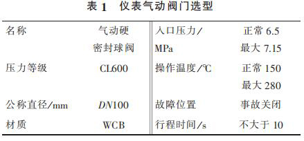 1) 飽和蒸汽流量計出口管線總閥泄漏無法在線處理,導致氣化爐停車。在入氣化爐根部增加 2 臺儀表氣動閥門,要求每月進行 2 次開、關,防止閥門出現卡塞現象。 新增 2 臺儀表氣動閥門相關參數見表 1。