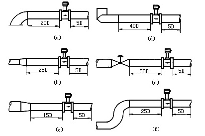2)配管應與傳感器同心,同軸度應小于0.05D`。