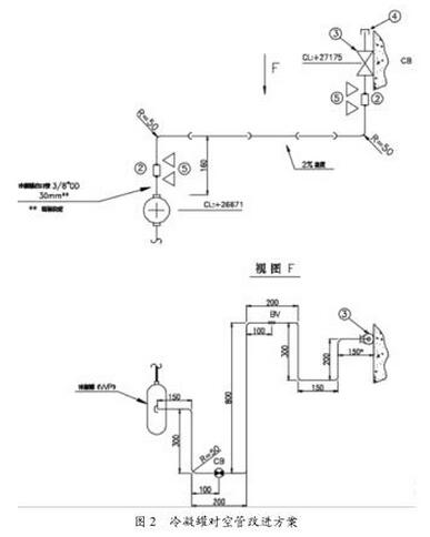 通過工程設計人員和運行人員的溝通, 提出在冷凝罐對空管增加截止閥, 用于在檢修期間冷凝罐內高溫蒸汽的排出。