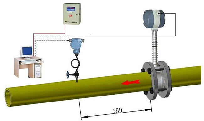 注:調節閥盡可能不安裝在渦街流量儀表的上游,而應安裝在渦街流量儀表的下游10D處。