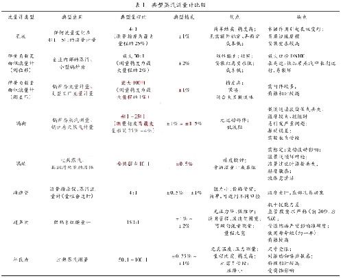 除了上述流量計,常用的還有超聲流量計、科式力流量計、渦輪流量計等。為了方便蒸汽測量選型,對常用蒸汽流量計,就典型應用場合、典型量程比、典型精度、優點及缺點進行總結,結果見表1,節流件典型壓損的比較見圖1。