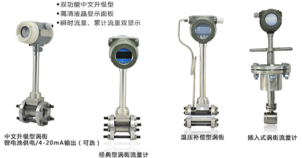 渦街流量計與現場顯示儀組合后,成為智能一體化流量計,分別用于飽和蒸汽流量計量、過熱蒸汽流量計量、各種化學氣體流量計量和各種液體流量計量。