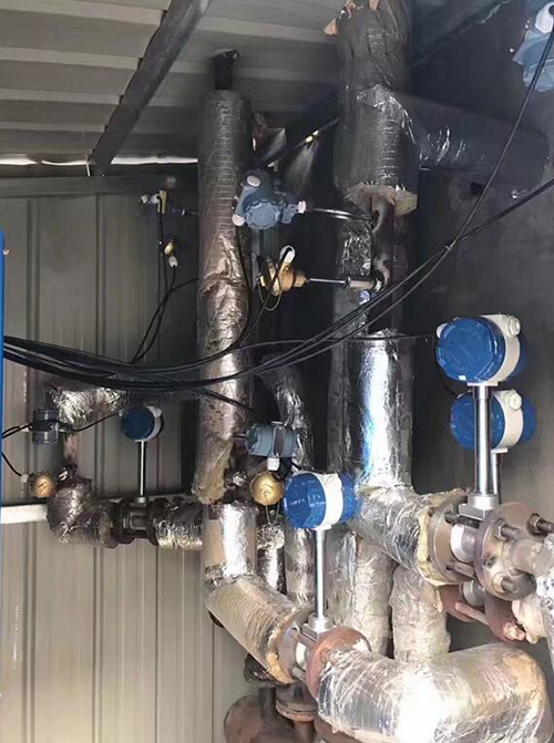 9.傳感器在有保溫層管道上的安裝。測量高溫蒸汽時,保溫層*多不能超過支架高度的三分之一。