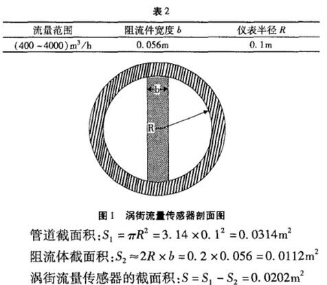 當流量為4000m³/h時,此時通過氣體渦街流量傳感器的流速v: